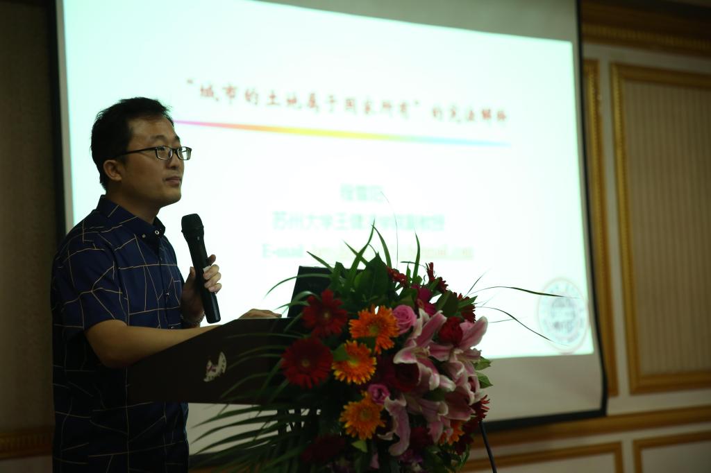 苏州大学法学院程雪阳副教授介绍了解释《宪法》第十条上的思考与建议。程教授认为,土地改革的核心是法律上的障碍,而法律上的核心问题是怎么理解和处理《宪法》第十条第一款“城市的土地属于国家所有”。