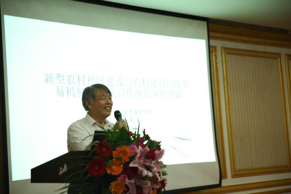 河南大学中原发展研究院院长耿明斋教授发表了“新型农村社区建设与农村建设用地交易”的演讲。耿教授介绍到,从2011年下半年到2013年上半年,河南开展了大规模的农村新型社区建设。几个村统一规划、拆迁,将农民集中安置在“新型农村社区”。