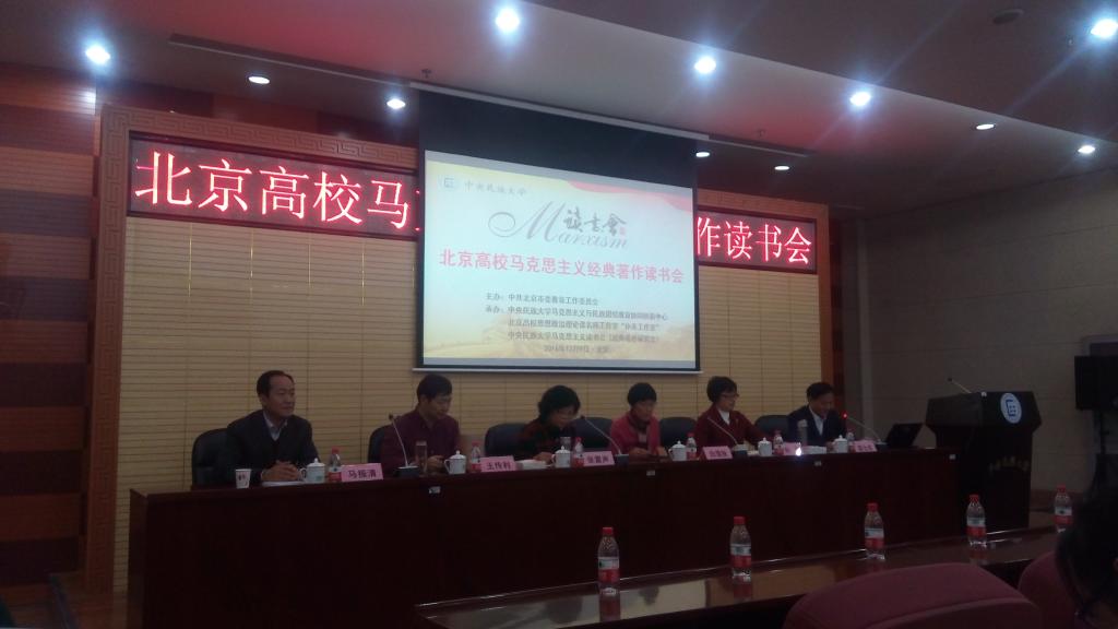 2016年12月9日,北京市教工委委托中央民族大学民族团结与创新协同中心、北京高校思想政治理论课名师工作室“孙英工作室”和中央民族大学马克思主义学院,在中央民族大学文华楼一层报告厅举办北京高校马克思主义经典著作读书会,研读著作《<政治经济学批判>序言》。我校必赢国际437官网政治经济学系教工党支部教师韩金华、顾炜宇、张维闵、何召鹏参加了本次读书会。