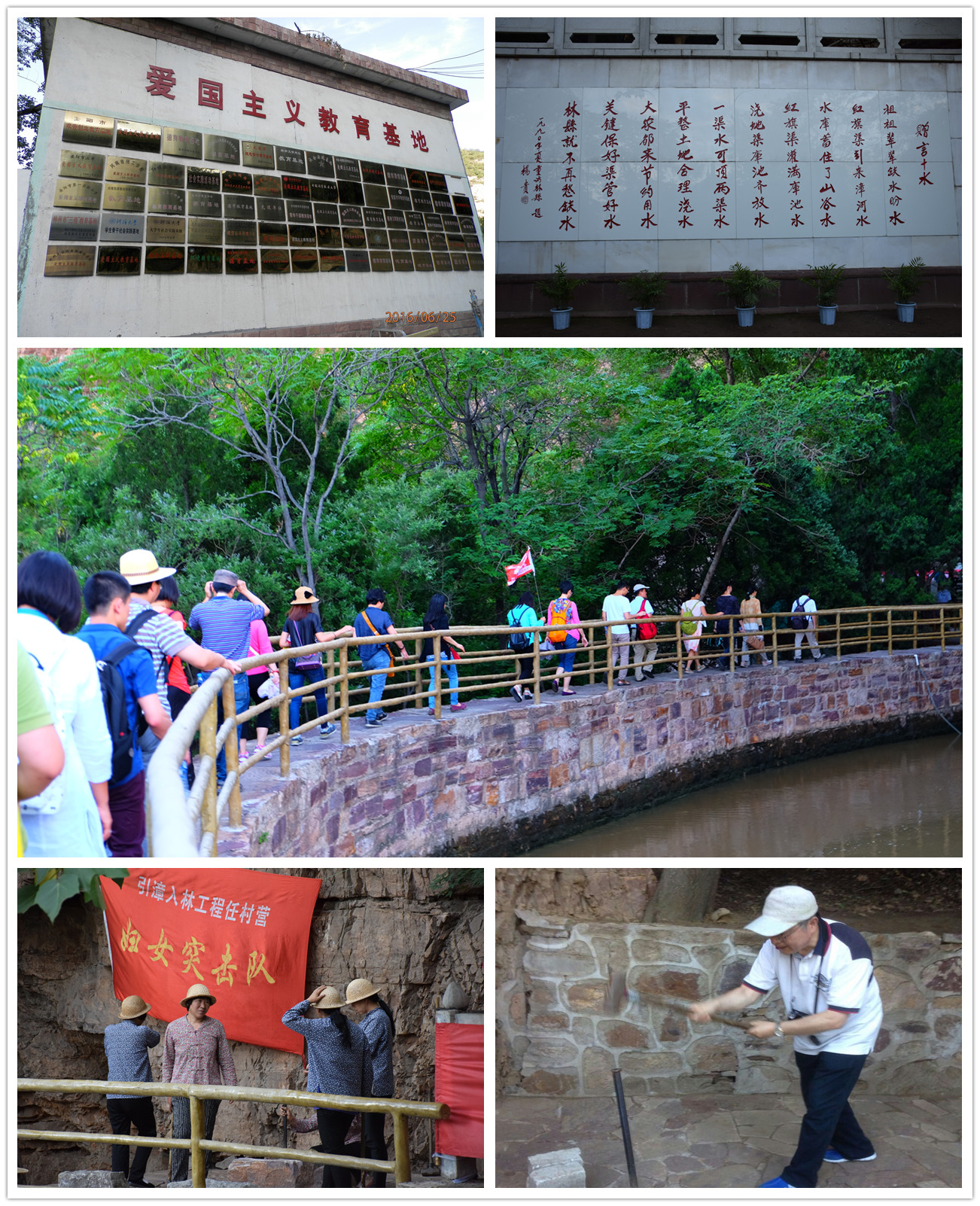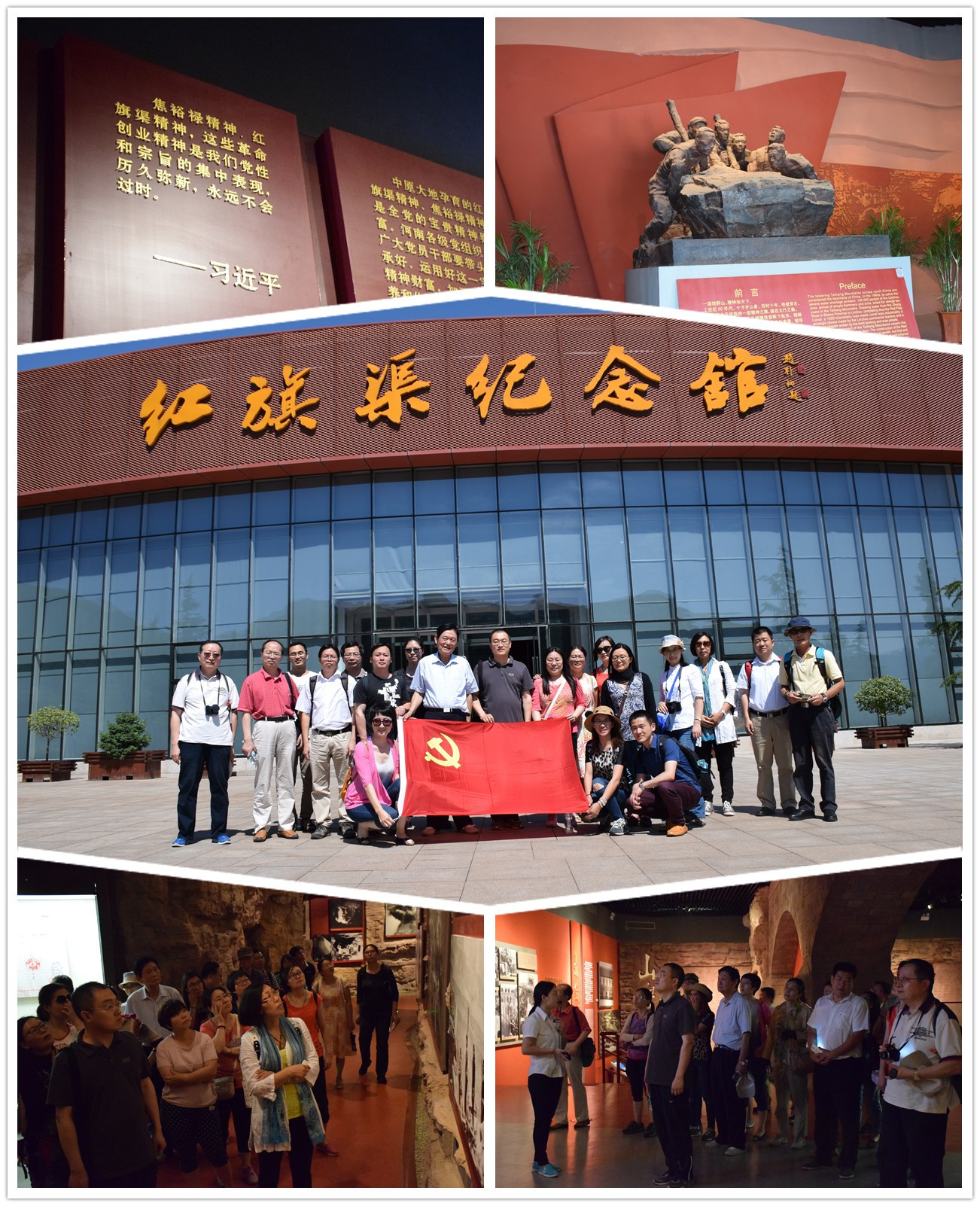 6月25日下午,必赢官网教职工党员一行31人抵达位于河南省林州市北部的红旗渠纪念馆,了解了人工天河——红旗渠的开凿历程。穿过星落棋布的浅浅方塘,拾百余级石阶而上,便是宛若红色飘带的红旗渠新馆。馆内2000余件珍贵文物完整再现了红旗渠修筑当年的真情实景,跟随纪念馆工作人员的步伐,时光随渠水倒转回上世纪60年代,置身其中,党员切身感受到了林县“水贵如命”的缺水现状,看到了吃水难、用水难对林县发展的掣肘,从根源上了解了修建红旗渠的历史与时代背景。榔头、草帽、铁钎、绳索,简陋的工具与艰苦的条件形成了鲜明对比;拦河填沙、悬崖除险、开山架渠,一张张泛黄的黑白照片再现了红旗渠修建时的恢弘壮景;动员令、群英像、献身碑,81名英雄儿女的鲜血与10万林县人民的汗水撑起了红旗渠的脊梁,也触动了每位党员的心。历时10个春秋,林县人逢山凿洞,遇沟架桥,劈开太行山,引来漳河水,建成了总长1500公里的引漳入林工程——中国水长城,也塑造了“自力更生、艰苦创业、团结协作、无私奉献”的红旗渠精神。“焦裕禄精神、红旗渠精神,这些革命创业精神是我们党性和宗旨的集中表现,历久弥新,永久不会过时。”——驻足习近平总书记的题词前,在场每位党员对红旗渠精神、对“两学一做”有了更深入的认知与了解。有党员表示,红旗渠深刻诠释了“实干兴邦”的箴言,它把中国道路、中国力量和中国精神,镌刻在了这座太行丰碑上。也有党员感叹:以“凿洞能手”王师存为代表的一众优秀党员在红旗渠修建中真正发挥了先锋引领作用,是修渠大军的尖刀利刃,作为教师党员,我们应该学习他们不畏艰险、奋勇争先的革命斗争精神。