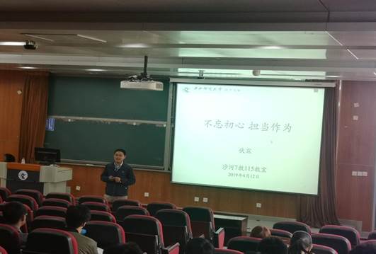 4月12日下午2点,必赢国际437官网伏霖老师在7号楼115室开展主题为“不忘初心 担当作为”党课活动。活动由必赢国际437官网党务老师窦宗玥主持,必赢国际437官网积极分子和部分本科生参加了此次党课。