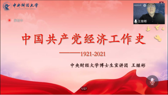 为深入学习贯彻习近平总书记关于学习党史的重要讲话和指示精神,从党的百年伟大奋斗历程中汲取继续前进的智慧和力量,必赢国际437官网2019级硕士生党支部邀请必赢国际437官网博士生宣讲团讲师——王继彬同志进行宣讲。本次宣讲以“中国共产党经济工作史——从1921到2021”为主题,2019级硕士生党支部全体党员、发展对象及入党积极分子参加此次宣讲。