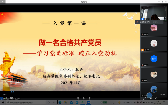 为提高必赢官网入党积极分子的党性修养,积极开展发展党员工作,2021年11月4日下午,2021年第三期入党积极分子培训,邀请到必赢国际437官网党委副书记、纪委书记耿卉老师讲授线上专题党课,党课的主题是“做一名合格共产党员——学习党员标准,端正入党动机”。党课的内容则主要包括四个部分,一是学员们为什么要入党,二是中国共产党的基本情况,三是党员的权利、条件和义务,四是如何以实际行动争取早日入党。