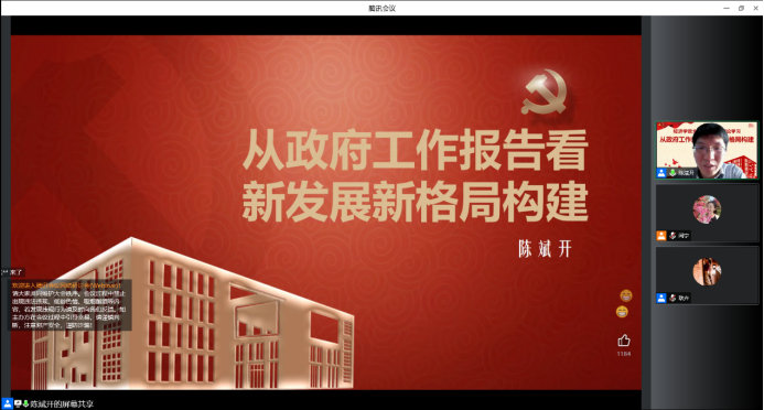 为深入学习贯彻2022年全国“两会”精神,增进学院广大师生对政府工作报告以及国家经济政策系统全面的理解。4月20日下午,必赢国际437官网党委理论学习中心组开展“从政府工作报告看新发展格局构建”专题学习暨全院师生集中理论学习活动。本次学习由必赢国际437官网院长陈斌开主讲,学院党委副书记、纪委书记耿卉主持,学院党委理论学习中心组成员和全院师生共同参加学习。