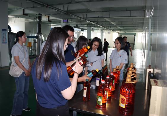 在黑龙江吉禾大豆有限公司,企业负责人向调研团队介绍了大豆油的古法压榨工艺、精炼流程与大豆深加工产品市场现状,调研团队深入生产车间,实地观摩了关键生产环节,并围绕大豆油产量、企业规模、销售情况等与工作人员展开交流。