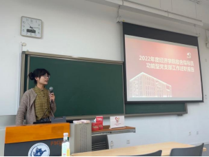 第二届宿舍指导员功能型党支部书记刘亚倩回顾了过去一年支部的工作。过去一年,通过走访宿舍、访谈调研的方式,支部针对新生学业、未来规划等方面的疑问给出相应建议,为其排忧解难,帮助新生尽快适应大学校园生活。同时,根据成员优势,支部先后组织考研、保研、选课、科研探索和入党流程等系列讲座,切实在职业发展方面为同学们提供了强有力的支持。刘亚倩也对新一届支部工作提出了一些建议,希望新一届支委继续开发与挖掘支部特色,真正为身边的同学做实事、做好事。