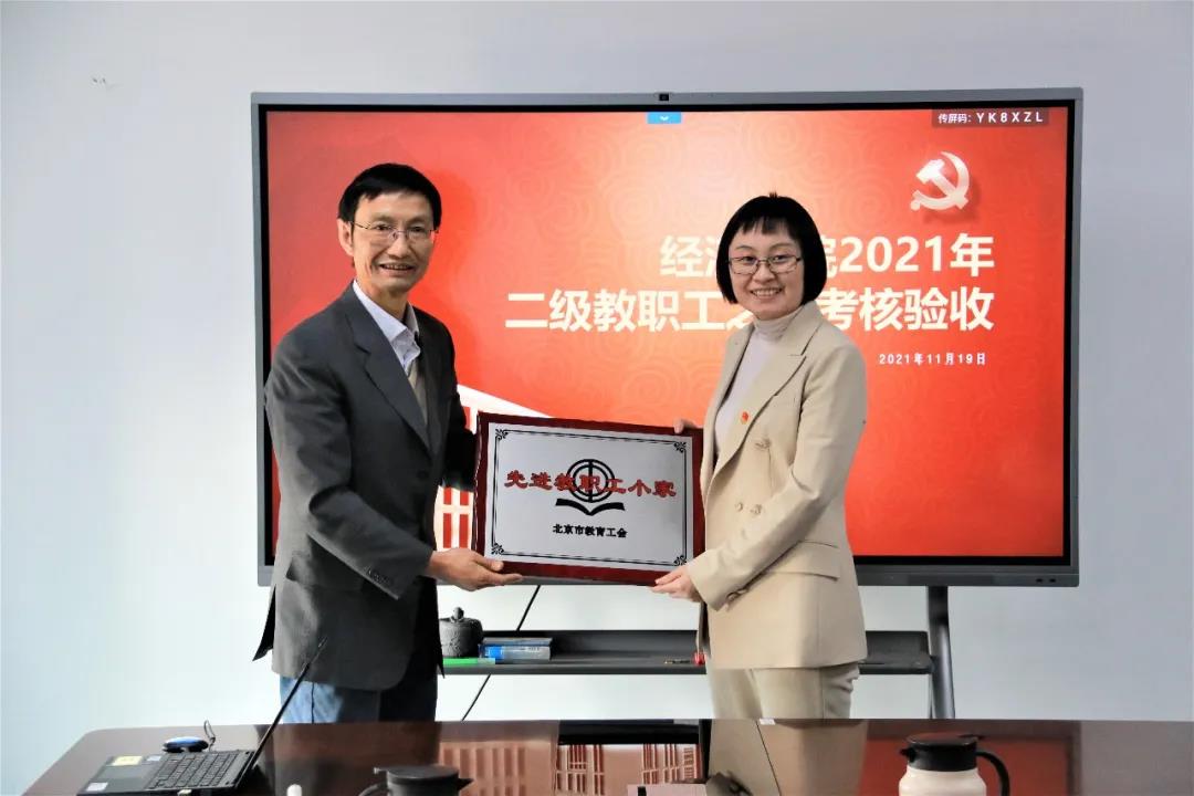 校工会常务副主席贺小海向必赢国际437官网授牌“北京市先进教职工小家”