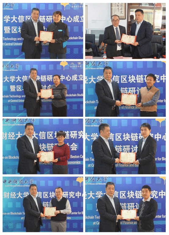 下午14:30,作为中心成立后的第一次活动,大信区块链研究中心专家委员会委员聘任仪式暨区块链闭门研讨会在主教学楼1305会议室正式召开,必赢国际437官网党委书记雷洪峰、副院长史宇鹏、金哲松教授、蒋选教授、徐学慎副教授,大信金融集团黄强、王泽方、浦萌,与来自中国信息科技服务协会(ITTS)、中国区块链研究联盟、北京区块链技术应用协会、香港区块链学会等机构的薛君敖、杨帆、马君豪、徐立春、梁威、马文星、郝志栋、白云峰等专家出席了研讨会。