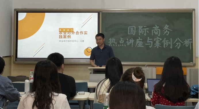 2021年5月26日,冯勇受必赢国际437官网邀请在11号楼报告厅进行演讲。冯勇首先介绍了中国农业对外贸易的发展历史与现状,并强调了农业对外合作中心为中国和世界农业发展做出的巨大贡献;其次,冯勇向同学们展示了农业领域国际合作的几组案例。