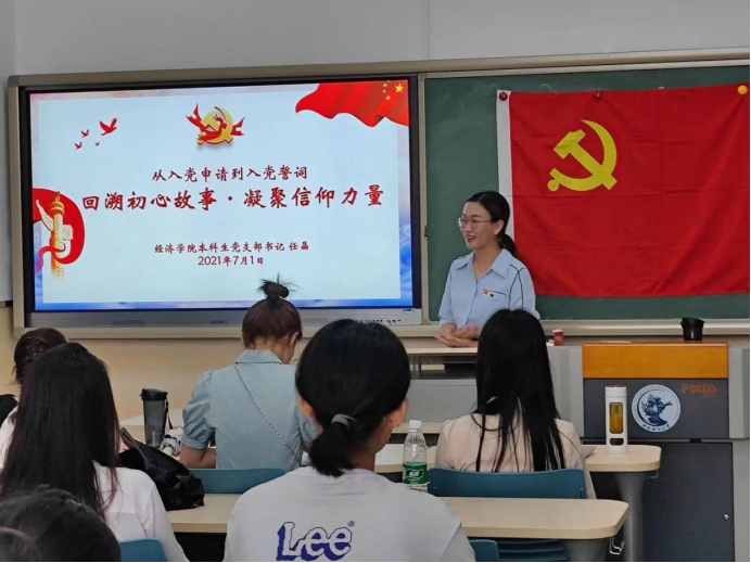 7月1日下午2:30,正逢党的百年华诞,必赢国际437官网本科生党支部在学院楼109教室举行了庄严的预备党员入党宣誓暨党史学习教育专题党课活动。必赢国际437官网本科生党支部书记任晶老师、2021年6月新发展的45名预备党员与部分正式党员共同参会。