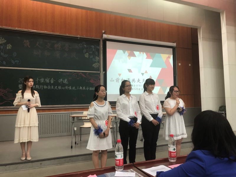 2018年本科生宿舍评优工作从五月初启动至五月底正式落下帷幕。经过本科生申请、学院推荐、学校材料复核、实地走访、现场评审展示等环节,必赢官网本科16级528宿舍入围了最终的现场评审展示环节。在现场展示中,528宿舍从学习、工作、社会活动各方面进行了阐述,得到了现场同学热烈的掌声与评委老师的肯定,最终获得了校级“优秀宿舍”的荣誉。同时必赢官网14级203毕业生宿舍也凭借着优秀的大学学业成绩、丰富的工作经历、扎实的科研成果获得了校级“优秀毕业生宿舍”的称号。