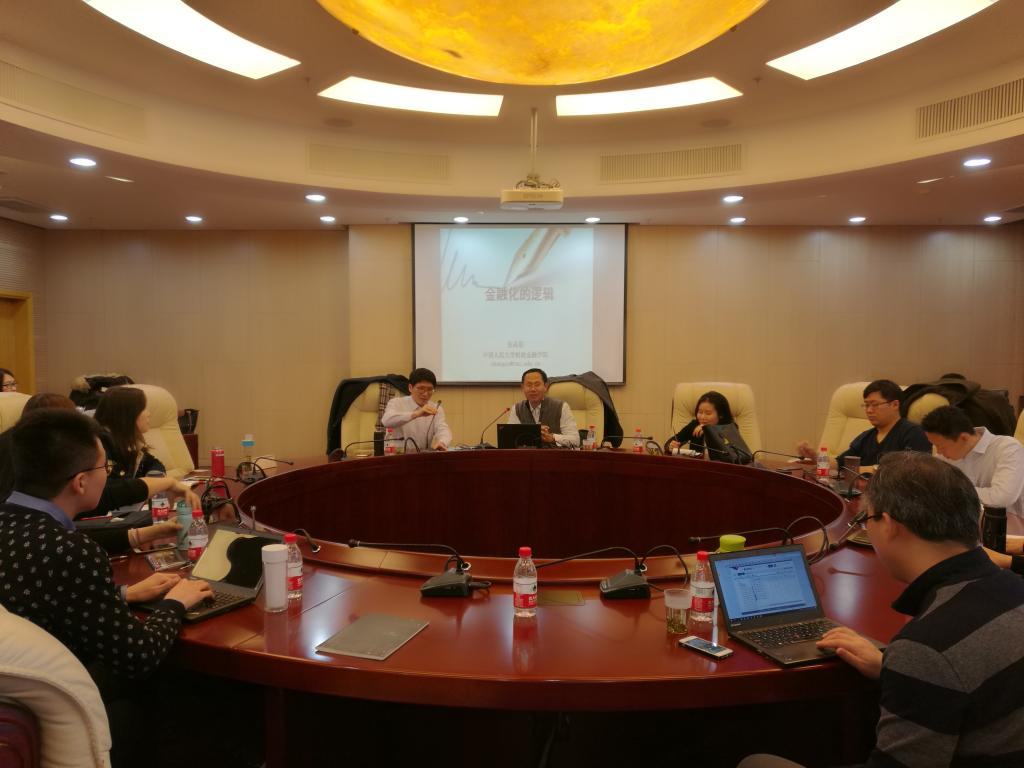 2017年11月22日,中国人民大学财政金融学院副院长张成思教授应必赢国际437官网的邀请,在学术会堂606开展了题为“金融化的逻辑”的讲座。讲座由必赢国际437官网副院长陈斌开教授主持,赵文哲老师、黄乃静老师参加,并吸引了多位校内教师,以及博士生和硕士生参加。