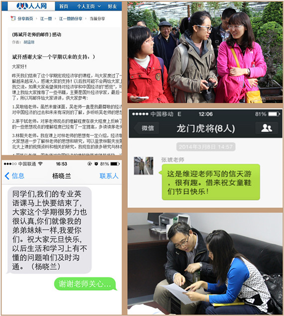 师爱如山,厚重坚定;师爱如海,浩瀚深沉;师爱如雨,润泽无隙。校园里每一处、每一刻都在上演着春风化雨般的必赢国际437官网师生情:赵丽芬副校长在繁忙工作中还对学生的论文进行逐字逐句的修改,“一次次温和的笑容、暖心的话语、谆谆的教诲都化作我脑中的智慧,胸中的热血,行为的规范”;齐兰老师时时牵挂学生,在去英国参加学术研讨会忙碌的途中,也不忘给学生送上新年祝福;总是嘱咐学生“多喝水”“别着凉”、出差也不忘给“孩子们”带点心的韩金华老师,让学生感觉在北京有了亲人,不再感到孤单;博学儒雅的金哲松老师也会在酷暑中为新生扛行李、灯下为学生修改论文;精心设置授课内容、神神秘秘拿出一个长筒袜,为回答问题学生送上圣诞节礼物的戴宏伟老师;“经济学是个很好玩的东西,会越想越有意思,要重点把握的是经济学的思想”,乐在经济学中的李彬老师感染着每一名学生;而如母亲般亲切的刘滨老师总是全身心解决学生成长道路中遇到的每一个困惑……他们爱如母、严如父,严慈相济,倾心育人,用温暖如春的关爱给予了学生奋发向上的力量。
