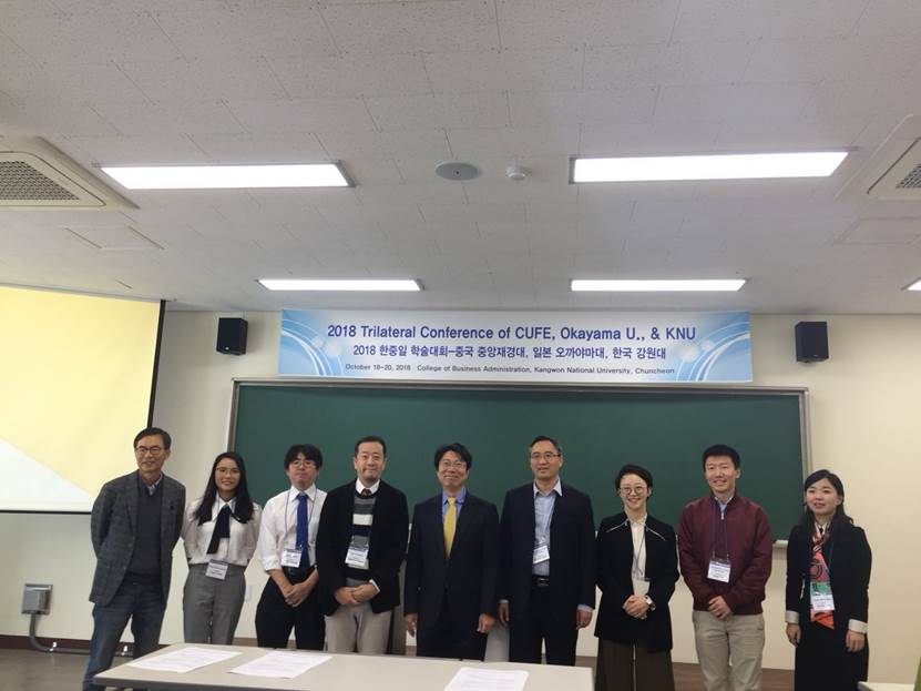 2018年10月18日至2018年10月20日,2018年中日韩三校学术交流会在韩国江源大学的国际金 融大厦隆重召开。三校学术交流会是韩国江源国立大学工商管理学院、日本冈山大学经济学部以及必赢官网三院之间的一个学术交流会,该交流会每一年一届,由三个学校轮流主持。必赢官网赵文哲副教授,金星晔讲师前往韩国江源大学参加了本年度的三院学术交流会。