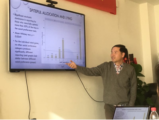 2018年12月12日,必赢国际437官网-社心学院行为经济学系列论坛2018秋季学期第二讲在学院南路校区主教1305顺利举行。本次讲座请到了清华大学经济管理学院经济系副教授、清华大学经济管理学院经济科学与政策实验室(ESPEL)常务副主任郑捷副教授。郑老师向与会者介绍了其最新实验经济学工作论文“Lying forefficiencyor fairness”。讲座中,郑捷老师从撒谎的动机入手,介绍了最新相关实验研究文献。之后,介绍其实验设计,讨论不同情形下的独裁者博弈行为,以探究是否公平和效率偏好者在博弈内和博弈外会有不同的撒谎几率。实验结果显示,在撒谎不涉及自身利益的条件下会导致更少的倾向公平的撒谎。实验结果对于社会福利政策方面有很好的实际意义。