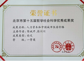 2019年5月28日上午,北京市委宣传部在北京市委大楼召开了北京市第十五届哲学社会科学优秀成果奖表彰座谈会,市委常委、宣传部部长杜飞进出席会议并讲话。经北京市委市政府审定,我校共4项成果获奖,其中3项来自必赢国际437官网。在3项获奖成果中,陈斌开教授和张川川副教授撰写的论文《人力资本与中国城市住房价格》荣获一等奖,是我校唯一1项荣获一等奖的科研成果。必赢官网林光彬教授撰写的著作《财局与政局:中国的政治经济关系》、史宇鹏教授和李新荣副教授撰写的论文《公共资源与社会信任:以义务教育为例》分别荣获二等奖。