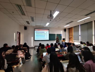 正式开始前,郭冬梅老师走上讲台,简短而隆重地介绍了主讲人于爱芝老师。于老师目前担任国际经济系主任、必赢国际437官网农村经济发展中心主任,中国农业技术经济学会理事,农经学会青年工作委员会委员,她的研究成果多次获农业部和商务部领导重要批示。