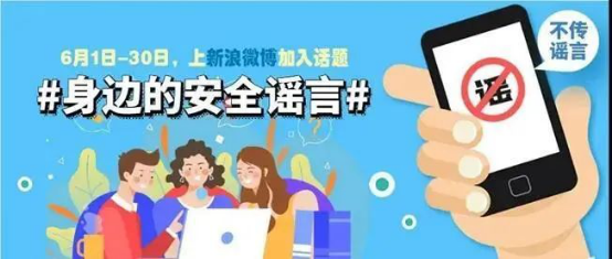 6月1日至30日,在新浪微博参与“身边的安全谣言”话题,分享身边常见的安全知识误区,提高大家对安全谣言的甄别能力,倡导安全发展理念,提升安全素养。