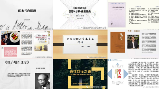 本次系列读书会上,先后有26位同学做了精彩纷呈的分享,受益匪浅。其中,熊勇杰同学分享了马克思·韦伯写作的《新教伦理与资本主义精神》一书,本书主要探究的是宗教性因素是通过什么机制产生出了资本主义精神。作者以严谨的逻辑、丰富的史料、敏锐的观察排除了大量的竞争性假说,排除了资本主义精神内生于资本主义制度的可能,并揭示了资本主义精神的本质特征。读者可以看到思想在历史中是如何一步步影响人们的行动,并感受到马克思·韦伯对其祖国、对人类命运的强烈关怀。赵娅瑄同学分享了由林毅夫、蔡昉、李周所著的《中国的奇迹·发展战略与经济改革》。作者从发展战略的角度系统阐述了中国传统经济体制形成的逻辑起点,继而通过与同时期经济腾飞的日本和“亚洲四小龙”的发展战略进行比较,得出本书的主要观点:一个经济的发展绩效主要取决于其发展战略的选择。本书通过对中国改革的道路与经验的深入理解,立足于中国国情,从发展战略选择与资源禀赋之间的矛盾出发,系统地分析了中国传统经济体制模式形成的逻辑,建立起了基于中国改革与发展实践的转型经济学的基本理论与分析逻辑。