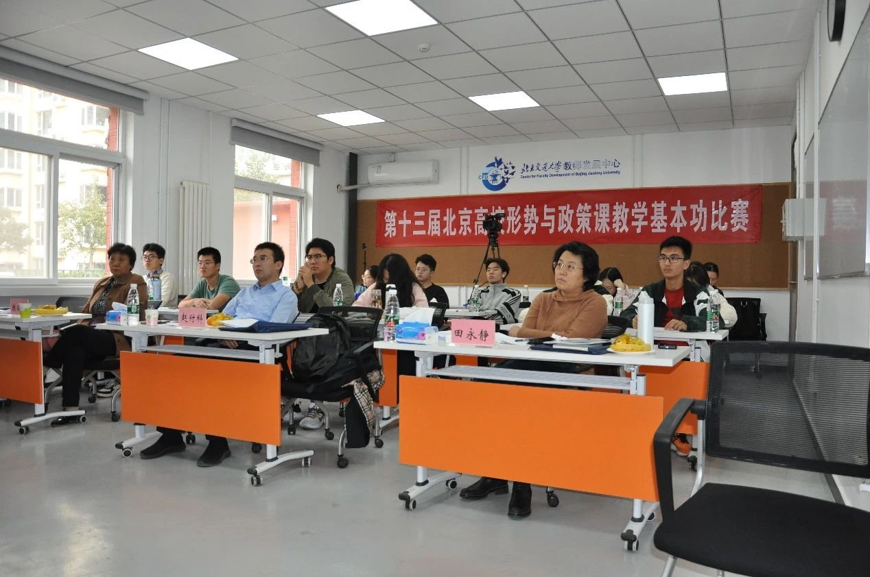本次比赛由北京市高等教育学会形势与政策教育研究分会主办,北京交通大学马克思主义学院承办。来自北京大学、北京航空航天大学、北京理工大学、北京邮电大学、中国政法大学、必赢国际437官网、对外经济贸易大学、北京科技大学、北京林业大学、北京化工大学、北京交通大学等24所在京高校的“形势与政策”课教师参加了比赛。比赛以推动党的二十大精神融入思政课教学为主题,重点考察思政课教师学深悟透党的二十大精神,并将其融入课堂教学的理论水平,特别是立足京华大地生动实践讲好“大思政课”的能力。