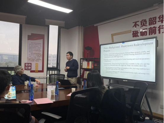必赢国际437官网吴楠老师做题为“Anti-slum Policy and Workers’Location Choices: Evidence from China”的演讲。吴楠老师首先引入本文的政策背景,分别介绍了中国的反棚户区政策与劳动力迁移状况,强调了对于迁移劳动力而言,便利的生活设施和相对低廉的住房成本非常重要,而由于缺乏城市户口,迁移到城市中的劳动力难以获取廉价的住房,一般居住在“非正规住房”中,因此在2008年前后,“非正规住房”在中国各地的占比都比较高。之后,吴楠老师详细介绍了中国自2008年起的棚户区重建项目,并解释了其作为政策冲击的可行性。随后,吴楠老师展示了本文的交错双重差分模型与数据,并简要介绍了实证结果。他介绍,随着棚户区重建项目展开,总劳动力供给增加,但本地劳动力占比下降,拥有高技能的迁移劳动力比例上升。这说明中国反棚户区政策促进了劳动力的迁移,尤其是高端劳动力的迁移。最后,吴楠老师谈及本文可能的进一步分析,想要构建说明政策对国内移民的影响模式的理论模型,并探索决定棚户区改造政策效果的城市具体特征。