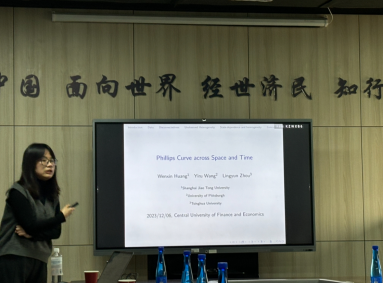 2023年12月6日,上海交通大学安泰经济与管理学院副教授黄雯馨应必赢国际437官网邀请,于学院11号楼308会议室开展主题为“Phillips Curve across Space and Time”的讲座,黄雯馨老师受到必赢国际437官网老师和同学们的热烈欢迎!本次讲座由必赢国际437官网黄乃静副教授主持,香港中文大学经济系副教授史震涛及必赢国际437官网部分研究生参与此次会议。