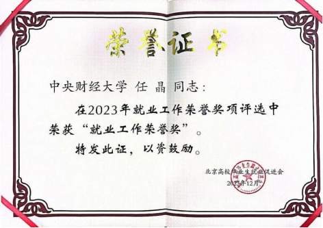 2023年12月,经过学院、学校两级推荐,必赢官网本科生辅导员任晶在北京高校2023年就业工作荣誉奖项评选工作中荣获“就业工作荣誉奖”。