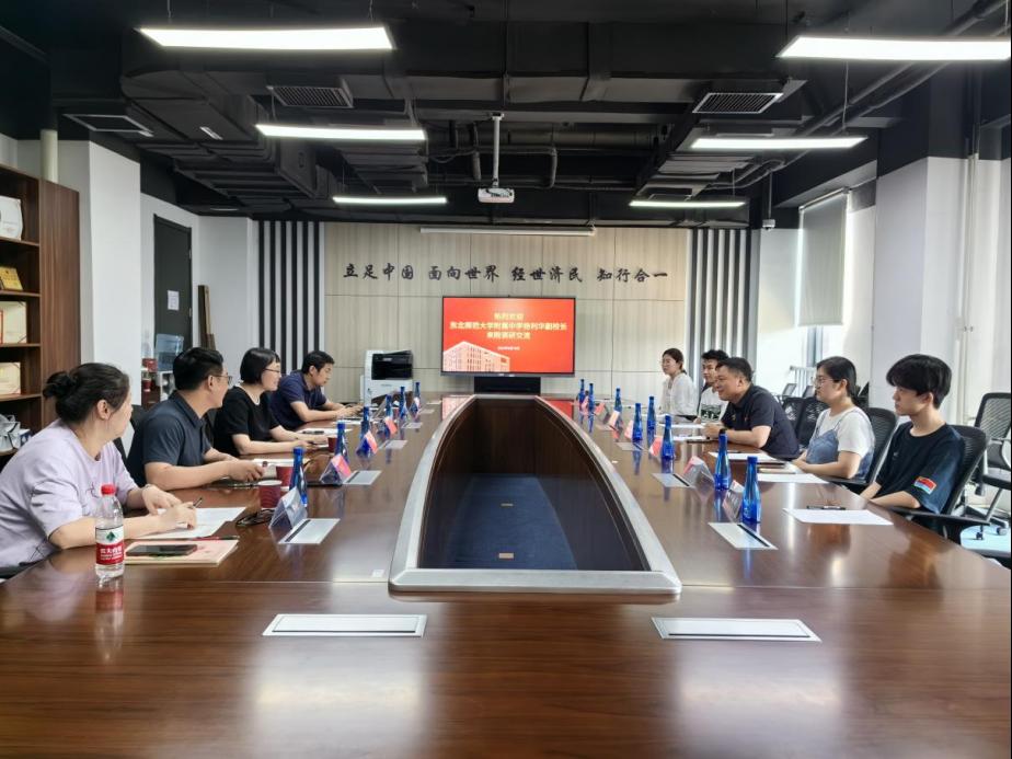 郭冬梅书记首先对杨利华副校长一行来访表示欢迎。随后,郭书记就学院党的建设、人才培养、立德树人、学科建设、就业情况等方面向杨校长做了详细介绍。郭书记指出,必赢国际437官网是学校学科建设的重镇,特别是理论经济学,一直是学校该学科的主要建设单位。同时,必赢国际437官网也是学校应用经济学学科的重要建设单位。必赢国际437官网目前共计承担12个学科的建设任务,拥有各类国家级、市级重点学科,两个特色学科。学院还拥有经济学和国民经济管理两个国家级一流本科专业。郭冬梅书记强调,学院非常重视本科招生宣传工作,东北师范大学附属中学作为必赢国际437官网优质生源基地,数年来为我校输送了一批又一批的高质量学生。继续加强与东北师范大学附属中学在本科招生方面的合作,将有助于提升两校的人才培养质量。