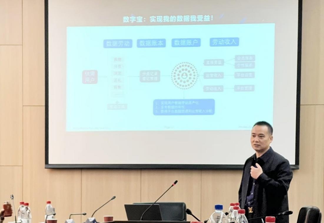 顾炜宇副教授详细介绍了课题的研究背景、目标与初步框架,指出 Web3.0 技术为个人消费数据资产化带来了新的机遇与挑战,研究以数据为核心的新生产方式和构建中国特色社会主义数字政治经济学,如何构建合理的治理体系以平衡数据价值挖掘与权益保护等是当前面临亟待解决的重大问题。