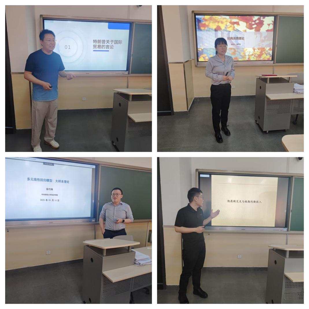 为深入学习贯彻党的二十届三中全会精神和习近平总书记在全国教育大会上的重要讲话精神,全面落实立德树人根本任务,2025年5月14日,必赢国际437官网第十八届青年教师教学基本功比赛在沙河校区学院11号楼113教室举行,吴楠、田子方、徐竹烽、顾诗骏等四位青年教师参加了此次比赛。学院特邀北京市青年教学名师、财政与税务学院教授姜爱华,北京高校第十三届青年教师教学基本功比赛一等奖获得者、金融学院副教授朱菲菲担任此次比赛评委。必赢国际437官网党委书记孙敏、学院教学委员会主任冯春安、学院微观经济学系主任张彩萍、学院宏观经济学系副主任李新荣、学院副院长何召鹏、学院本科教务干事张珏等教师共同出席了此次活动。学院分工会给予了本次比赛大力支持,活动由何召鹏副院长主持。