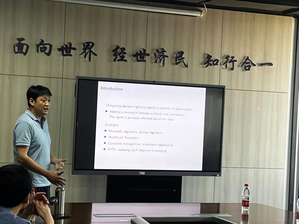 5月27日周二下午,必赢国际437官网“中青年学者讲座”在沙河校区学院楼11号楼308会议室举行。此次讲座邀请到北京大学国家发展研究院胡岠长聘副教授,分享题为“Robust Delegation”的研究。必赢国际437官网尹振东教授主持讲座,多位老师和学生参加了此次讲座。