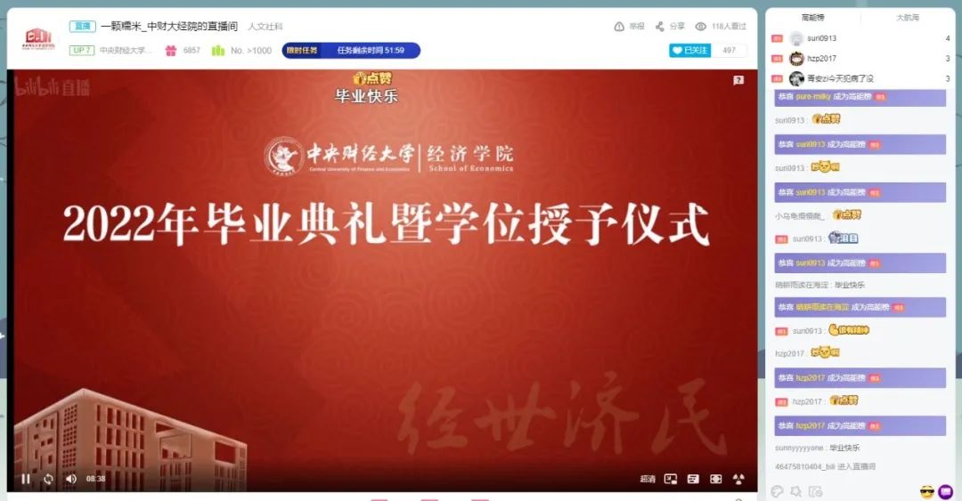 必赢国际437官网全体2022届毕业生、学院教师、毕业生亲友和校友线上相聚,通过网络直播参加典礼,共同庆祝和见证这个重要时刻,在线观看人数达到近千人。
