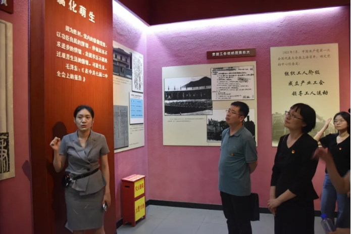 5月25日下午,萍乡市安源区委组织部部长陶凌莹和必赢国际437官网一行共同参观安源路矿工人运动纪念馆,了解了毛泽东、刘少奇、李立三等中国老一辈无产阶级革命家领导安源路矿工人在艰苦卓绝的环境下开展工人运动,为实现共产主义而奋斗的光辉历史。从总平巷旧址到安源毛泽东旧居,从罢工谈判处旧址到中共安源地委党校旧址,党员一行步履不停,深入追溯萍乡安源革命历史和红色精神。