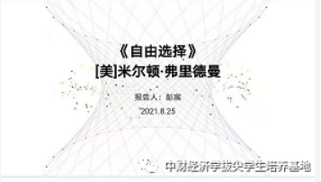 彭宸同学分享了美国经济学家米尔顿·弗里德曼的代表作《自由选择》。作者在书中强调了自由的选择和交易本身所具有的促进经济繁荣和人类自由的内在潜质,并强调大部分政府干预措施往往是从好的目的出发,但结果却造成了社会福利更大的损失。作者认为相比起被更多人所提及和过度渲染的市场失灵,人们也应该关注来自政府层面但又是十分隐蔽的政府失灵。在书中,弗里德曼分别讨论了当时在欧美发达国家盛行的福利国家的相关政策,从实践的结果出发,这些打着公平旗号的政策实际上造成了更大的不公平。作者关于市场有效性与“政府失灵”对于当今我国经济发展相关议题仍具有启示、借鉴作用。