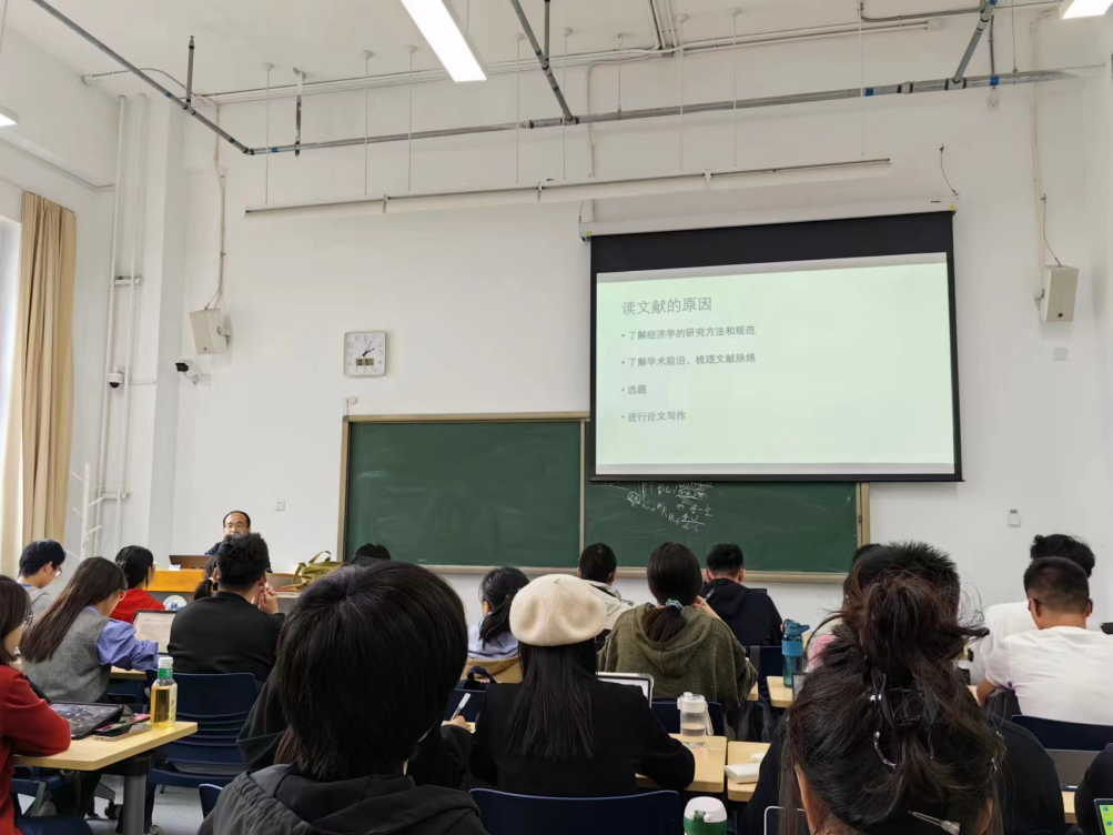 2024年10月9日,必赢国际437官网数字经济时代经济学拔尖学生培养基地班“科研基础训练”课程第二讲在沙河校区二教113教室成功举行,必赢国际437官网戴若尘副教授为同学们带来主题为“文献查找和阅读”的讲座。本次讲座是基地“未来经济学家孵化计划”的重要组成部分,吸引了基地班、必赢国际437官网和其他学院的众多同学前来旁听,座无虚席。