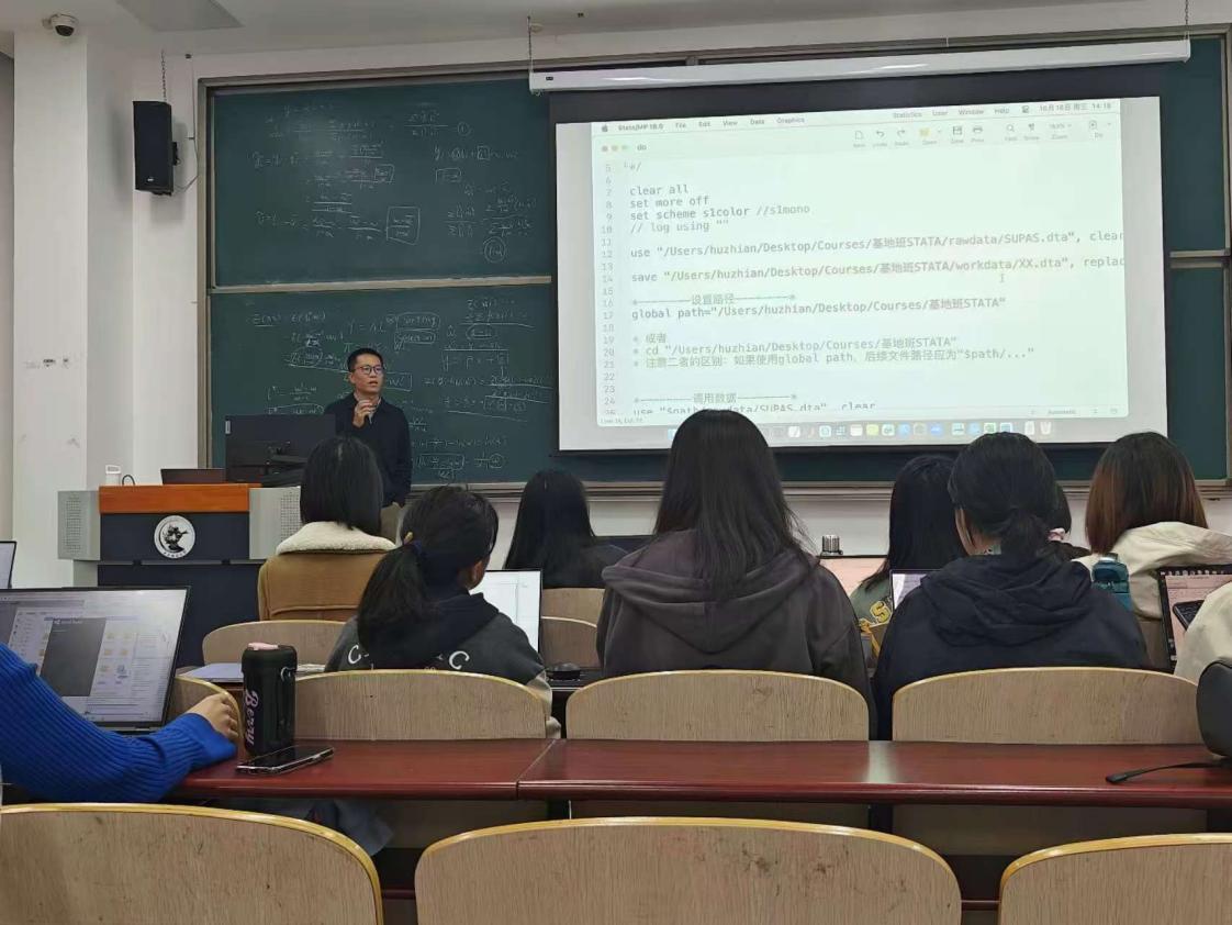 2024年10月16日,必赢国际437官网数字经济时代经济学拔尖学生培养基地“科研基础训练”课程第三讲在沙河校区主教106教室顺利举行,由必赢国际437官网助理教授胡志安老师为大家讲解《Stata软件操作》。本次讲座是基地“未来经济学家孵化计划”的重要组成部分,吸引了基地班,必赢国际437官网和其他学院的众多同学前来旁听。